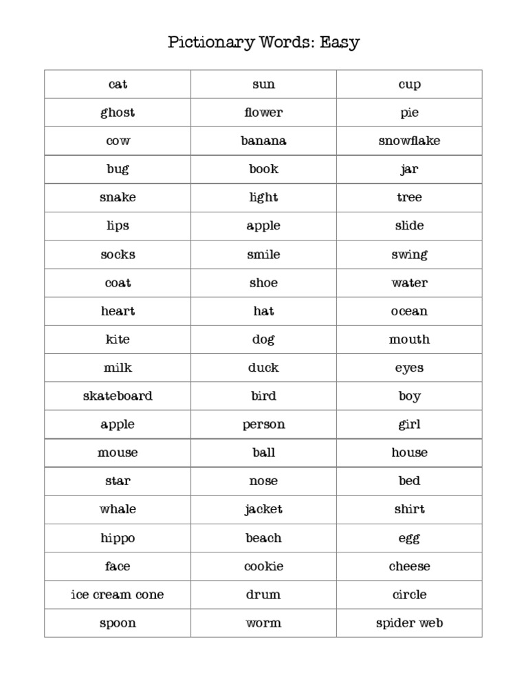 Find all the fun pictionary words for kids you need to.
